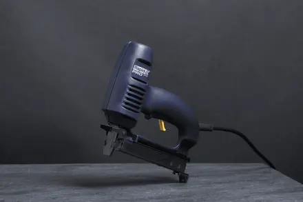 Electric stapler and brad nail gun features a heavy duty design that delivers outstanding driving power 8 2 43 m power cord hi lo power for hard and soft materials flush nose design solves the problem of stapling in tight spots.